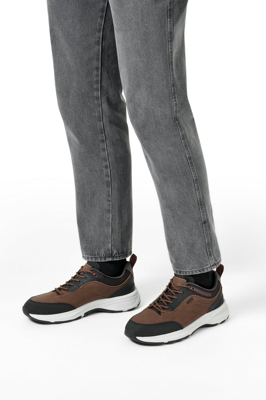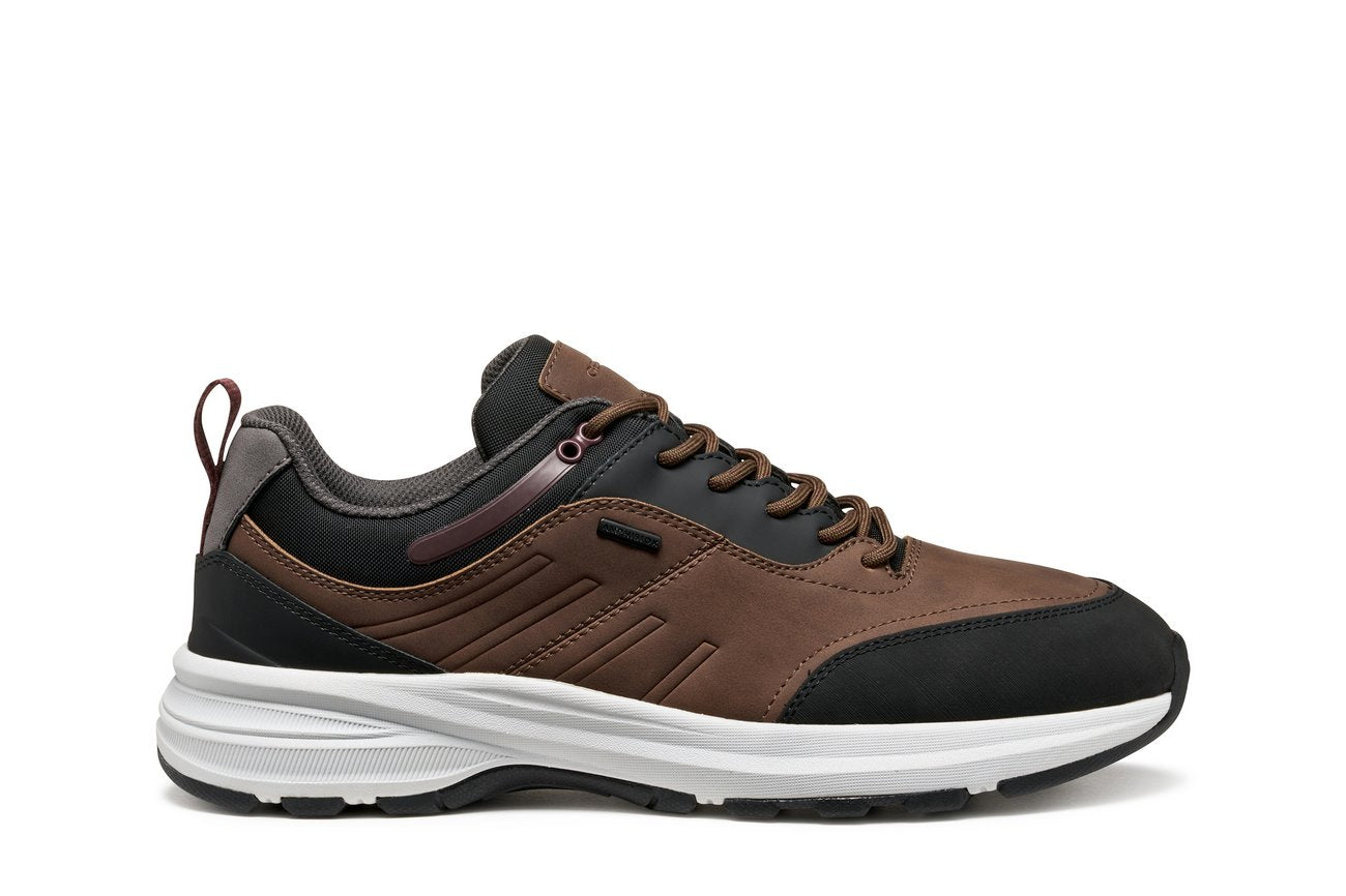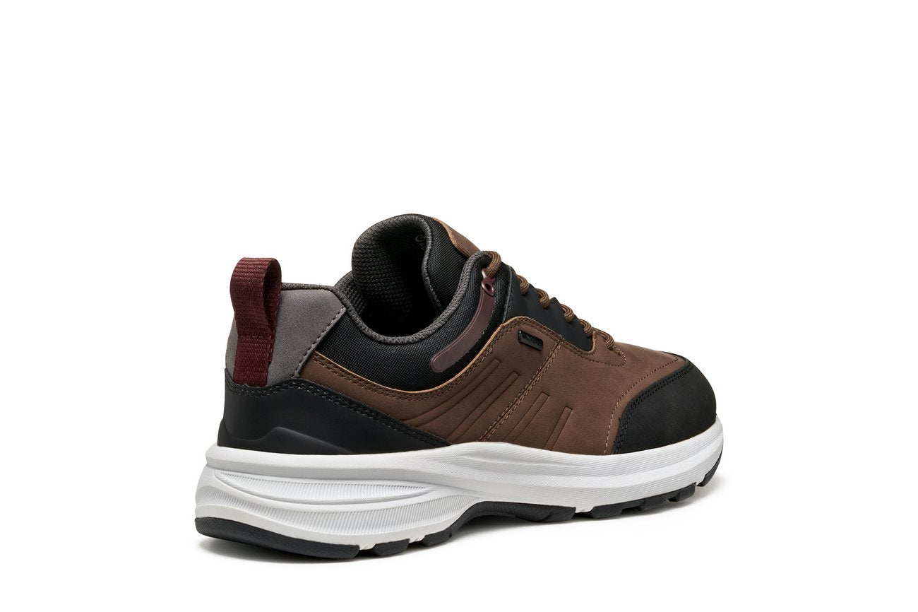 Il modello GEOX Senales B Abx Brown Cotto/Black è una sneaker bassa dal carattere sportivo e resistente, pensata per l'uomo che desidera protezione e comfort in ogni occasione.