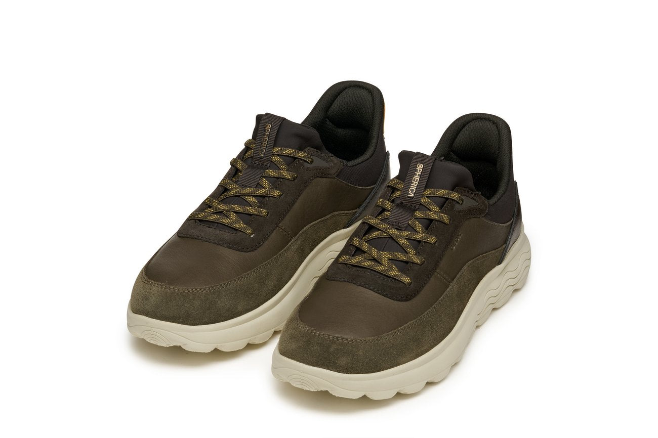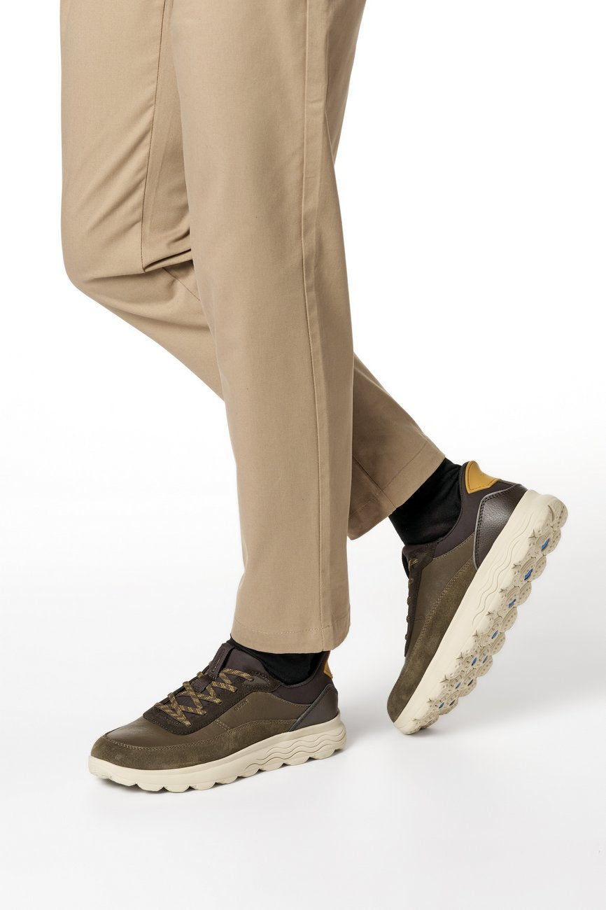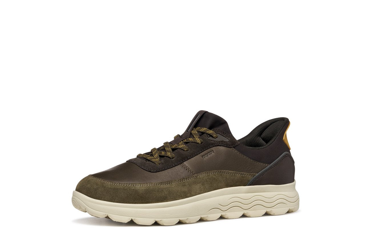 Il modello GEOX Spherica Plus Military/Coffee è una sneaker bassa dal design contemporaneo, ideale per l'uomo che desidera uno stile casual ricercato unito al massimo comfort.