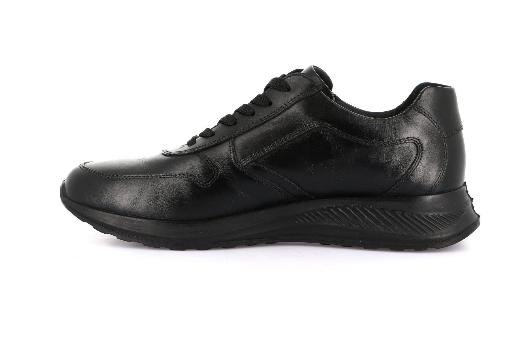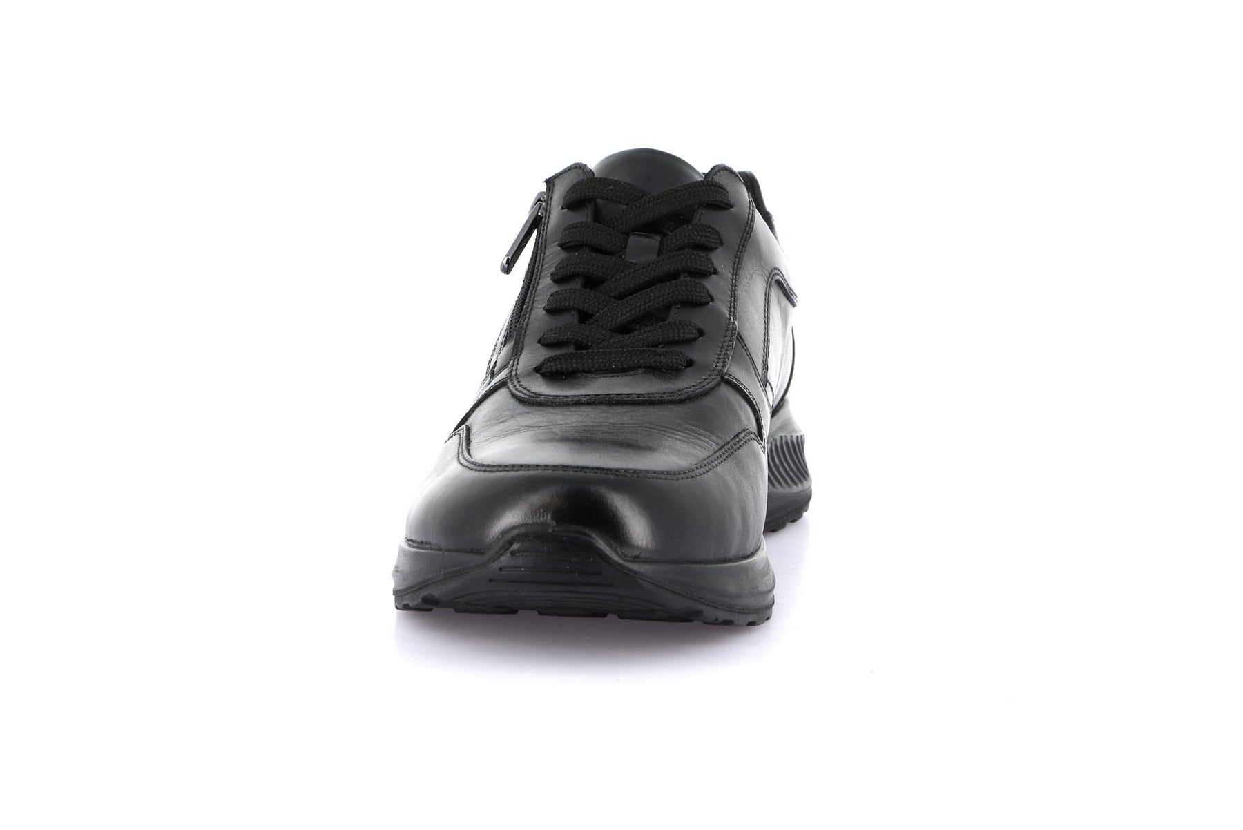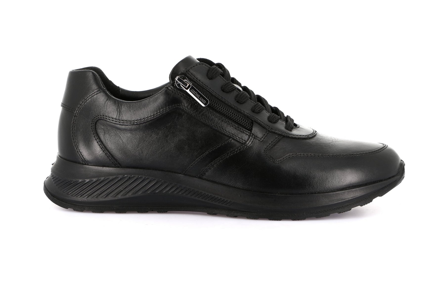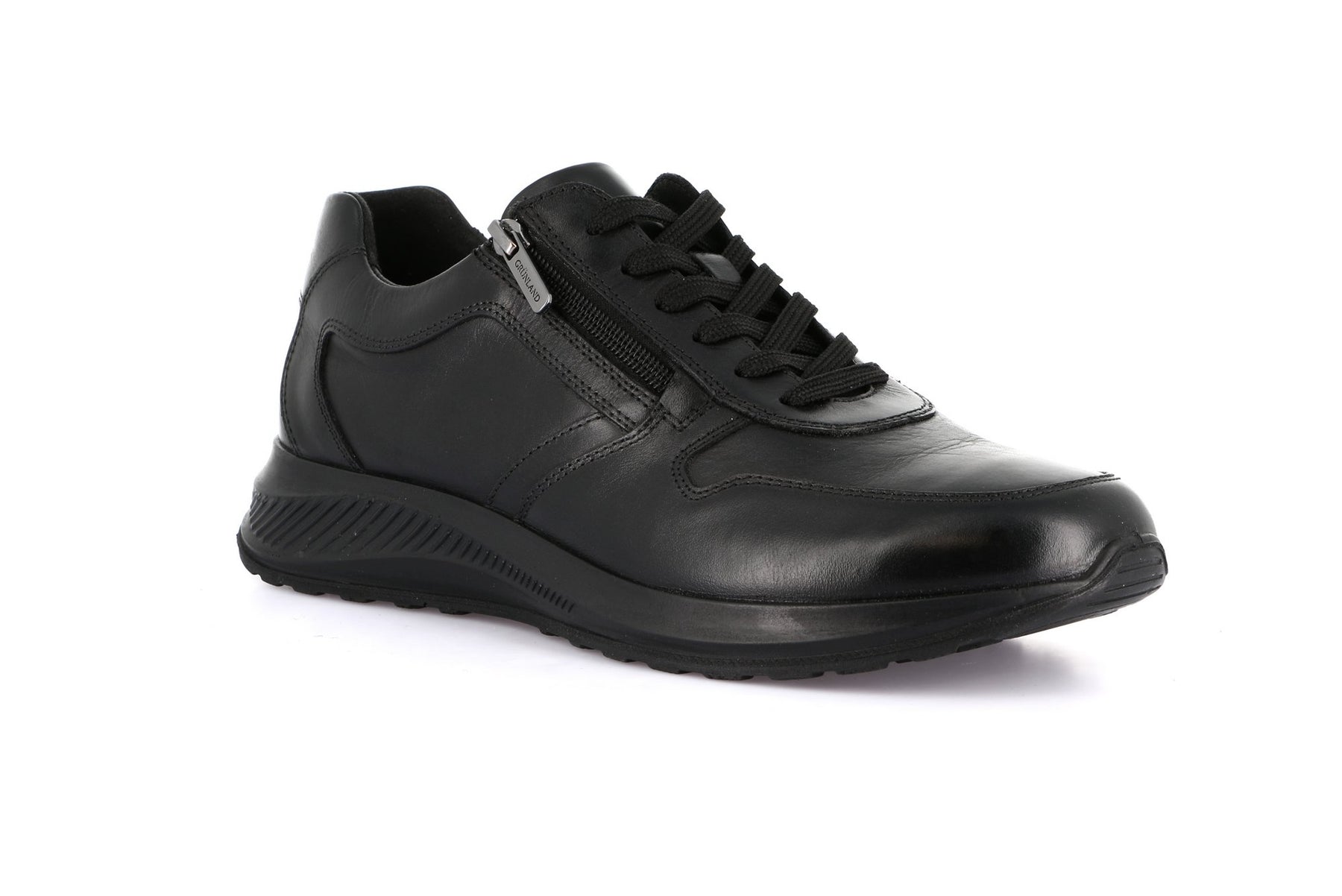GRUNLAND Sneaker Bassa Uomo - SC4633 Nero in pelle liscia con chiusura a lacci e zip laterale, suola leggera e ammortizzata.