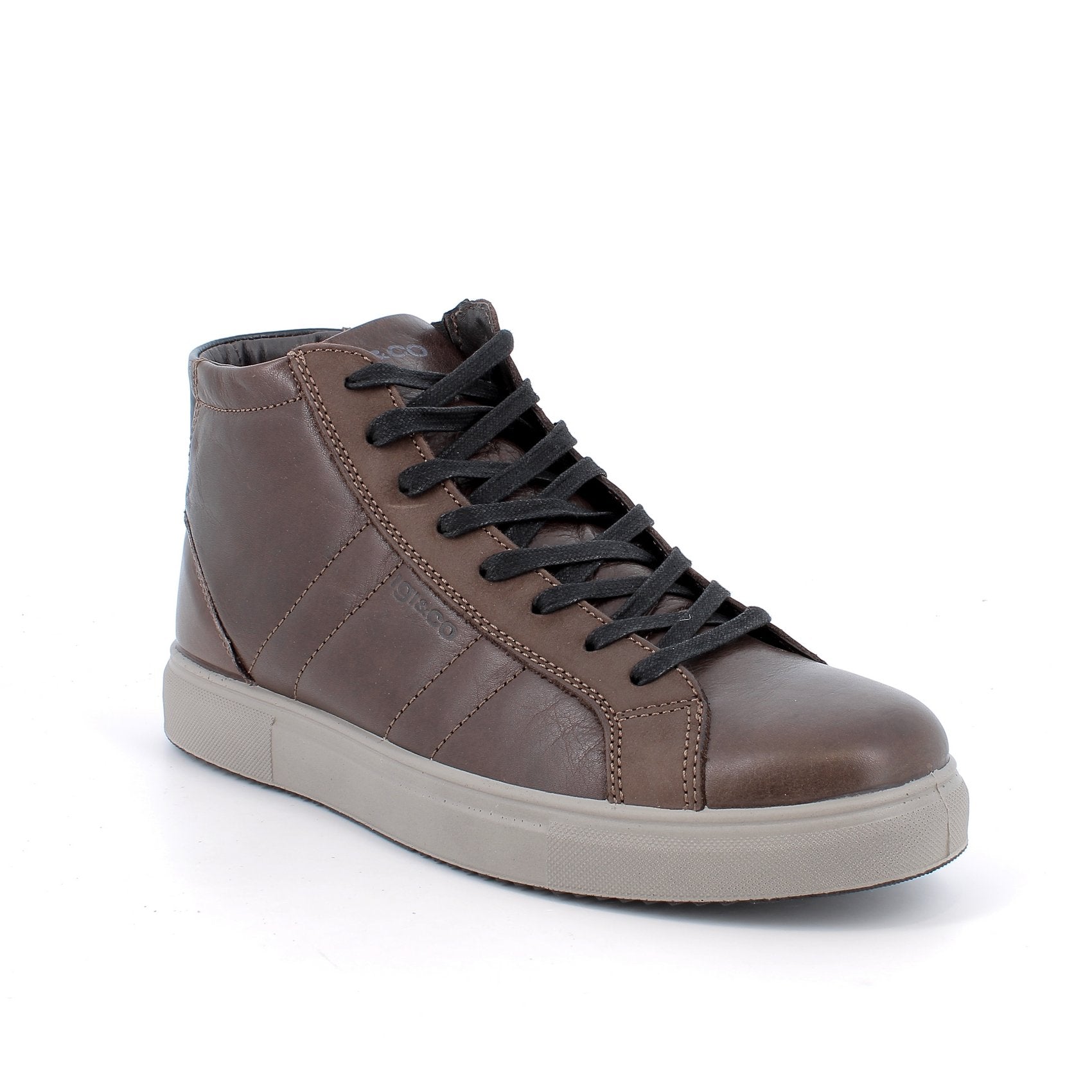 IGI&CO Sneaker Alta Uomo - 86355 Caffè Sneaker alta da uomo in pelle color caffè con allacciatura frontale e suola chiara leggera ammortizzata.