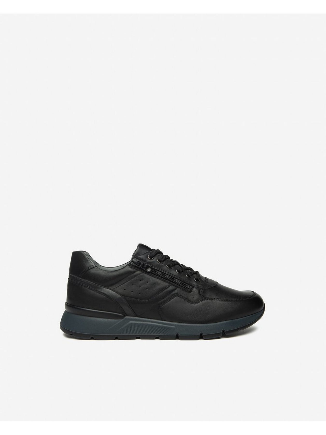 NERO GIARDINI Sneaker Bassa Uomo - I500870U Nero Sneaker da uomo in pelle nera con zip laterale e suola leggera da 4,5 cm, Made in Italy.