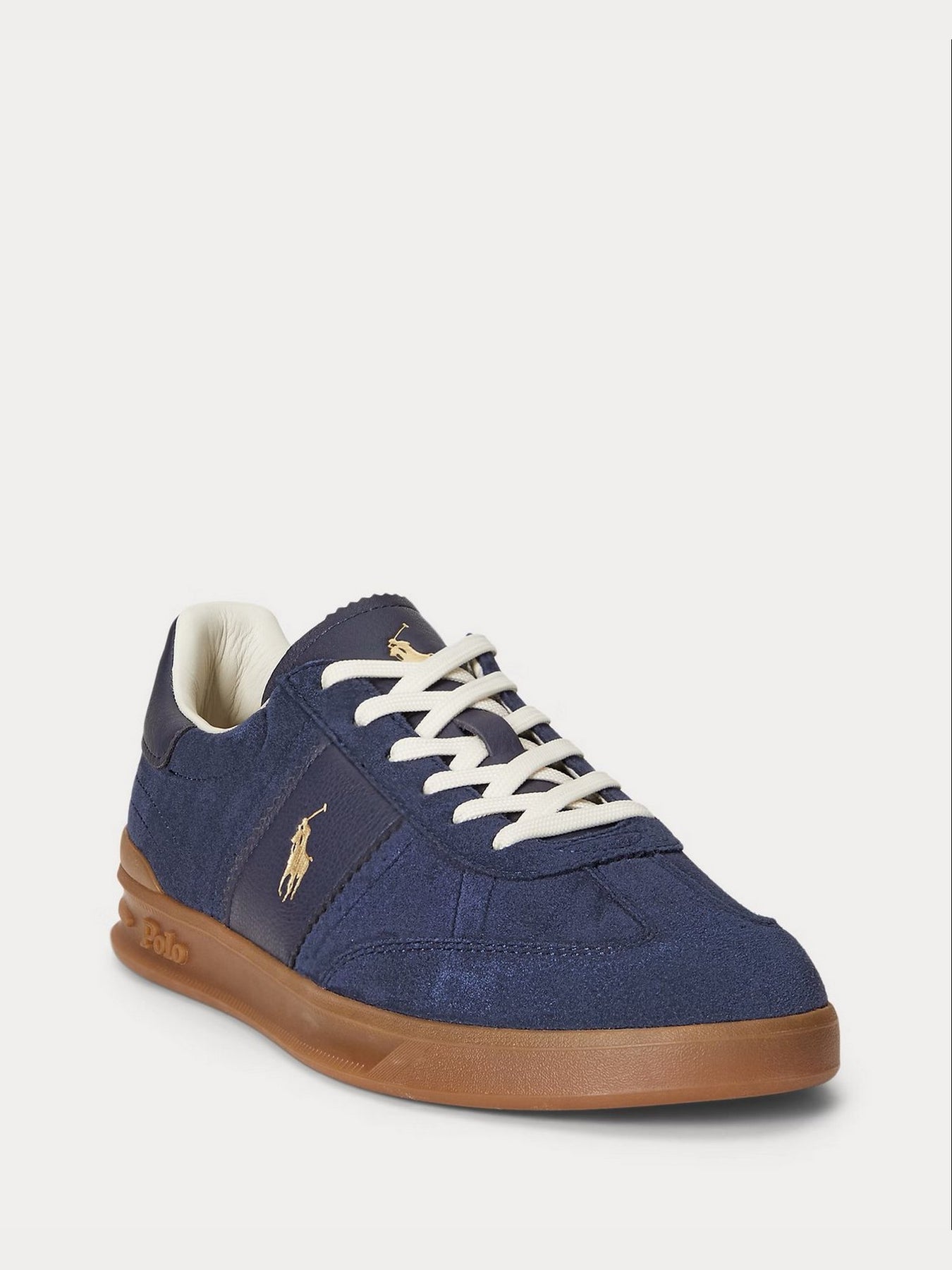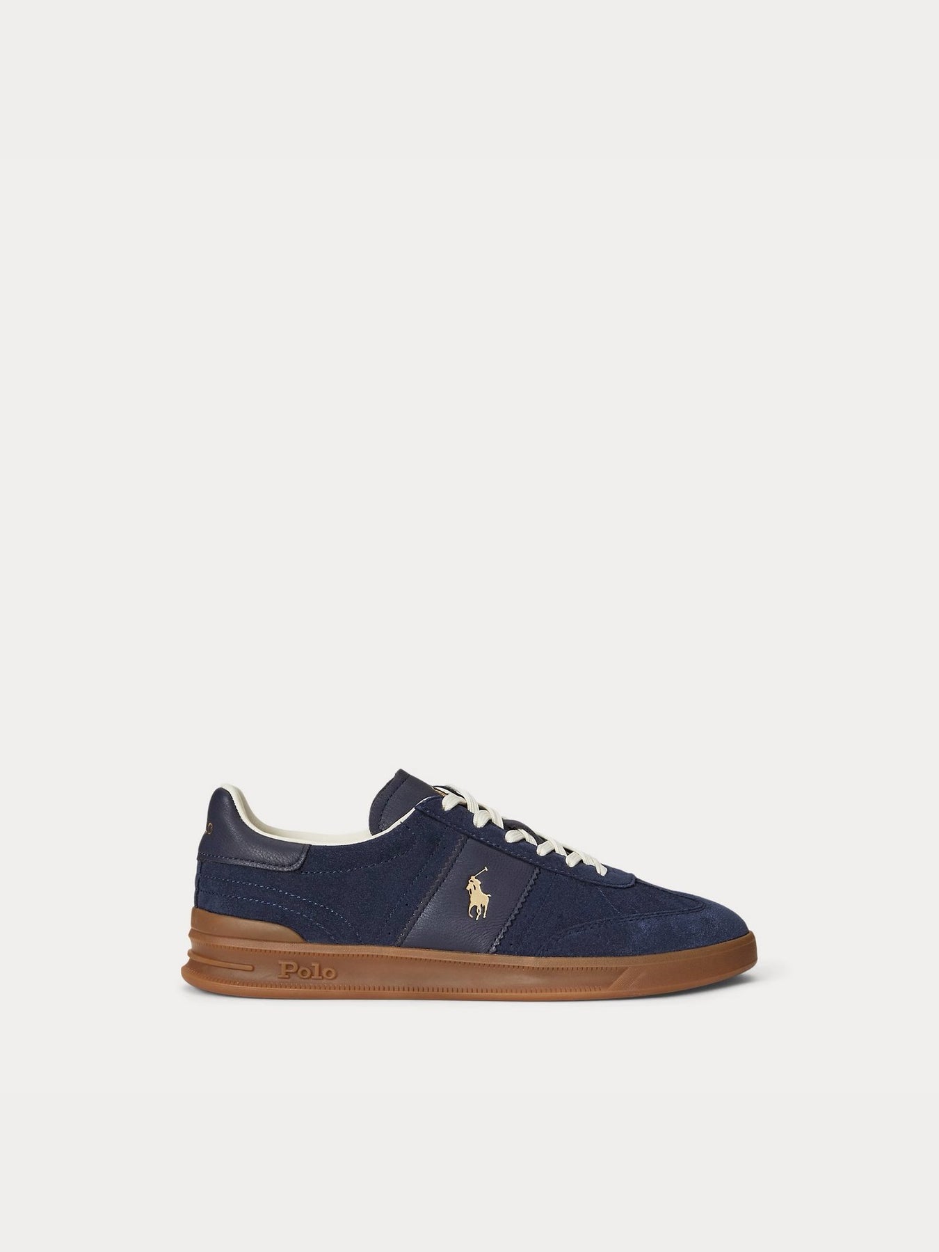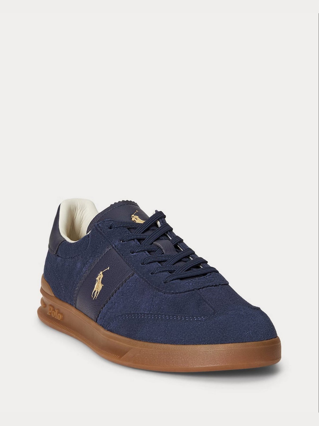 La sneaker Ralph Lauren Heritage Aera 809973707002 unisce eleganza sportiva e comfort quotidiano. Realizzata in morbido suede navy con inserti in pelle tono su tono, è impreziosita dall'iconico logo Polo color oro che ne esalta lo stile raffinato.