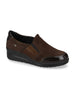 Realizzata in morbido suede color testa di moro con inserti in vernice lucida, si distingue per i dettagli laterali con micro-strass luminosi che donano un tocco raffinato. La calzata pratica senza lacci la rende facile e veloce da indossare, mentre la zeppa da 4 cm offre sostegno e comfort. La suola flessibile e antiscivolo assicura stabilità e benessere durante tutta la giornata.