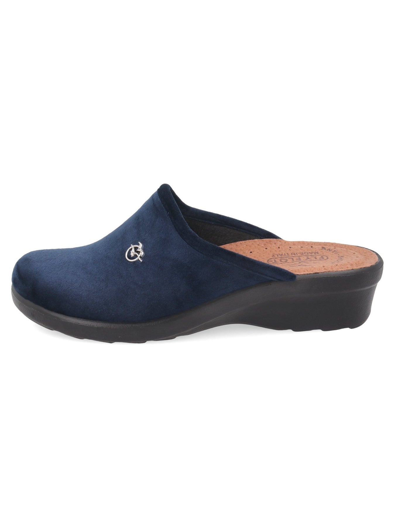 Realizzate in morbido tessuto scamosciato color blu, le pantofole Fly Flot avvolgono il piede con una calzata confortevole e traspirante, garantendo una piacevole sensazione di benessere a ogni passo. La struttura aperta sul tallone consente di indossarle facilmente, rendendole pratiche e veloci per l'uso domestico.