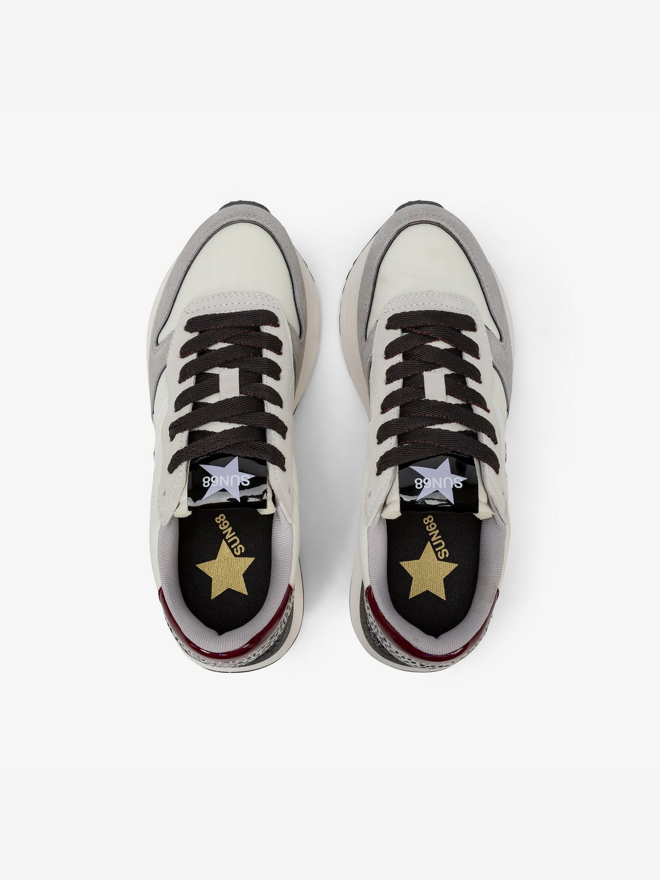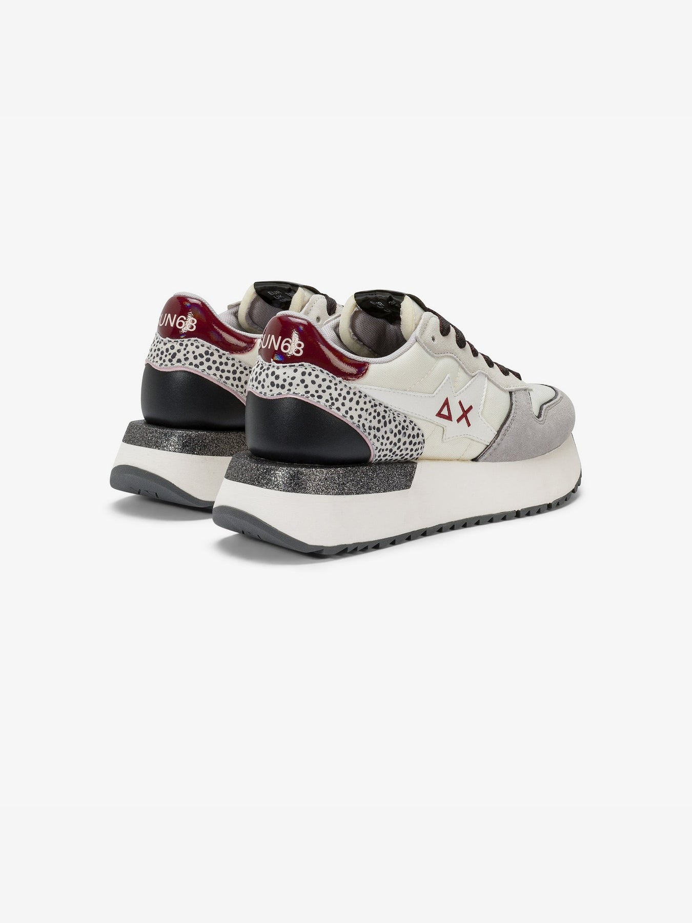Realizzate con un mix di materiali di alta qualità, le sneaker Big Stargirl presentano una raffinata colorazione bianco panna arricchita da inserti a contrasto e dettagli animalier sul tallone, che aggiungono carattere e originalità al design. Il logo laterale oversize completa l'estetica moderna del modello firmato SUN68, sinonimo di stile casual evoluto e cura dei dettagli.