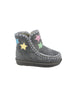 Realizzati in morbida ecopelle scamosciata color rosa cipria, questi scarponcini si distinguono per le stelle multicolor applicate sui lati, che aggiungono un look vivace e fantasioso. Le cuciture decorative a vista e il bordo con effetto intrecciato valorizzano il design artigianale e curato nei dettagli.