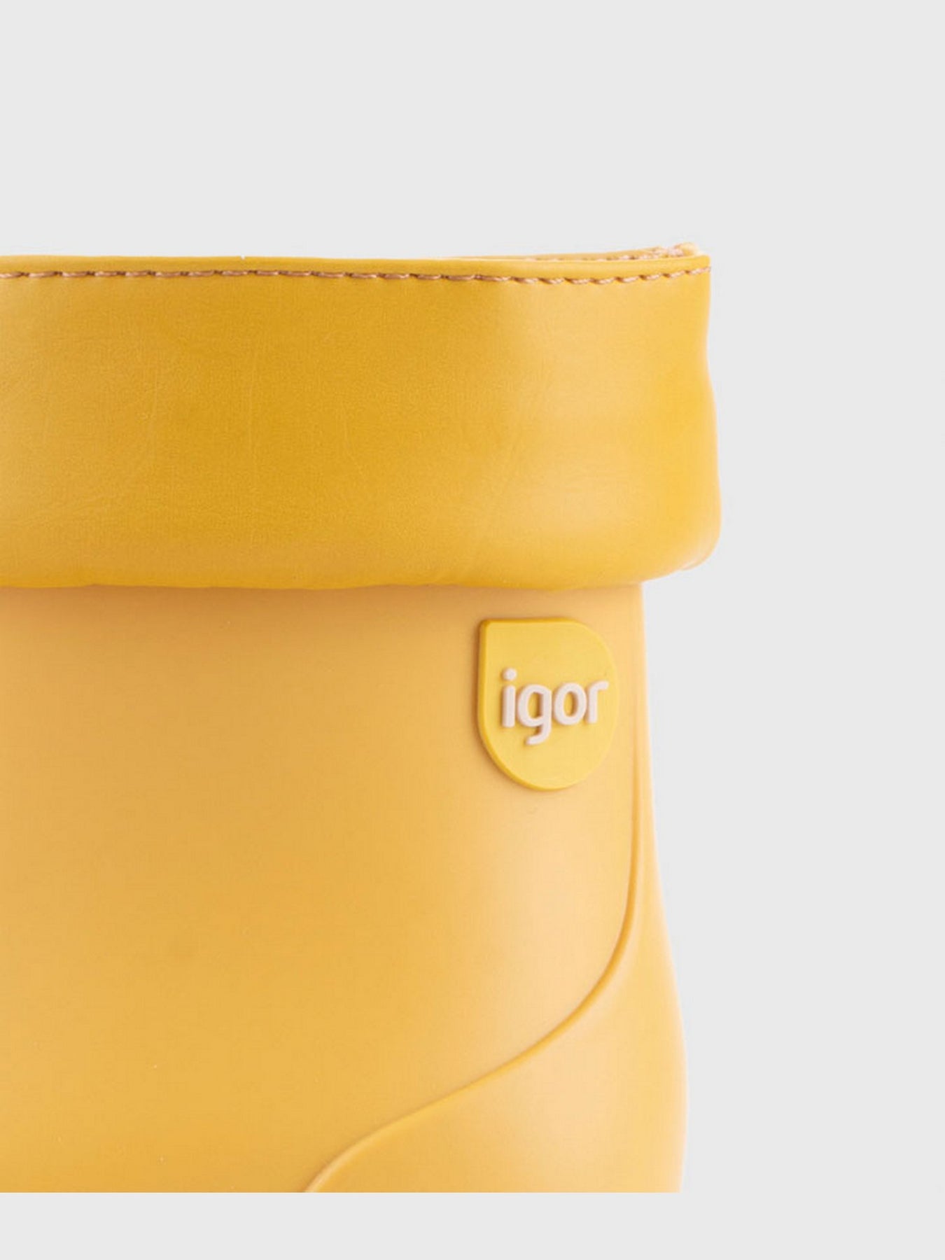 Realizzata in gomma PVC impermeabile color giallo brillante, la caloscia Igor presenta una forma ergonomica e flessibile con bordo regolabile tramite coulisse, che assicura una chiusura perfetta e impedisce all'acqua di entrare.
