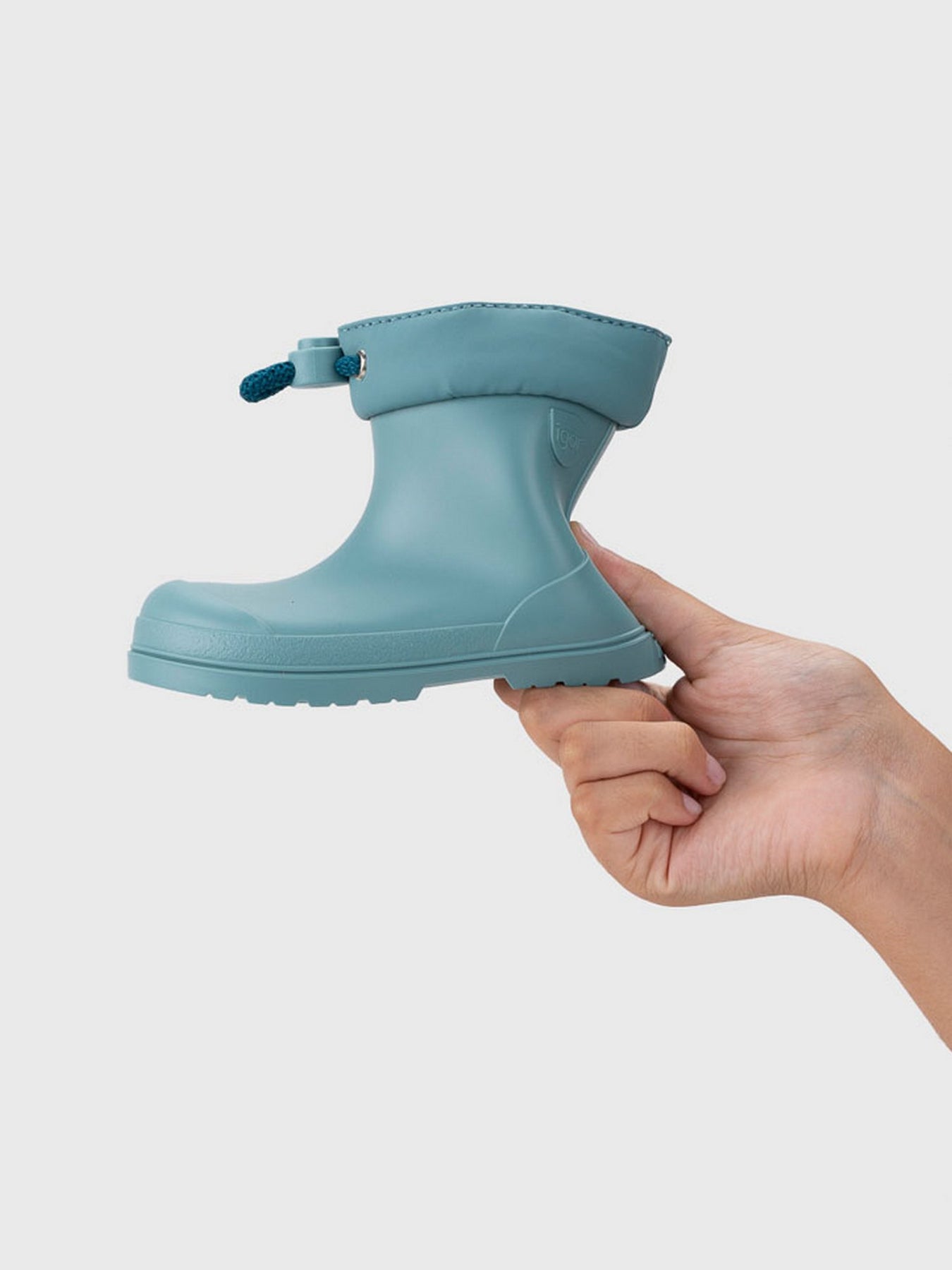 Realizzata in gomma PVC impermeabile color turchese, la caloscia Igor presenta una struttura ergonomica e flessibile con bordo regolabile tramite coulisse, che garantisce una chiusura stabile e impedisce all'acqua di entrare.