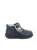 Tomaia Esterna: materiale effetto pelle blu con cinturino regolabile a strappo e fibbia decorativa