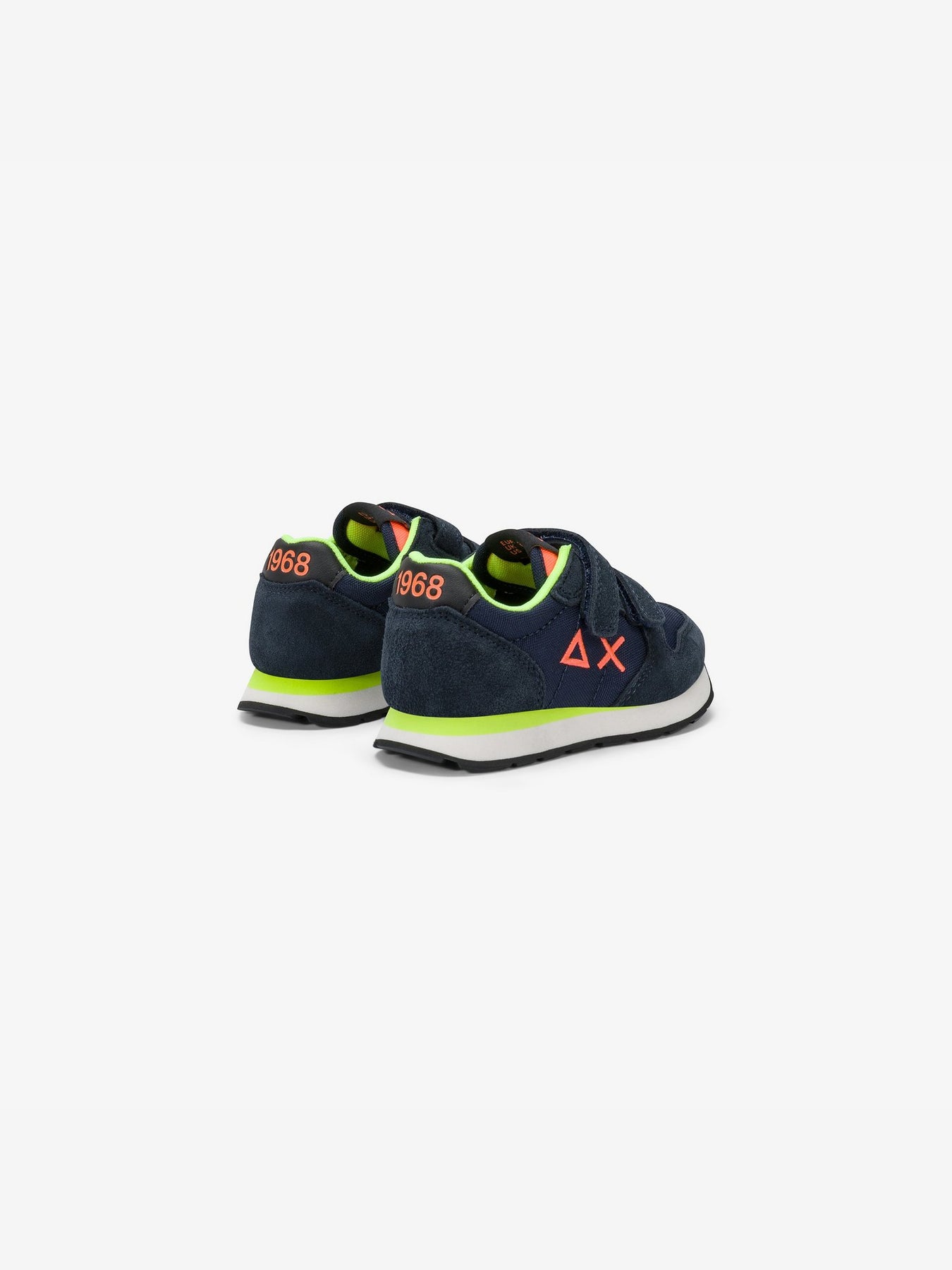 Realizzate con materiali resistenti e traspiranti, le sneaker Tom Fluo presentano una base blu navy arricchita da dettagli fluo a contrasto che donano un look moderno e vivace. Il design è firmato SUN68, garanzia di qualità e stile casual contemporaneo.
