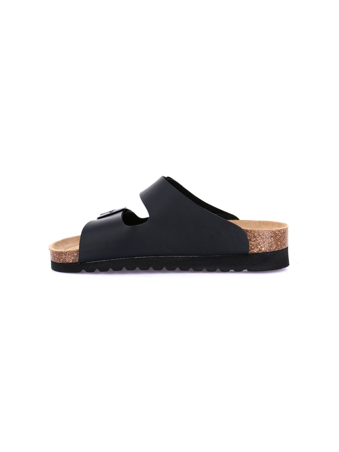 Tomaia Esterna: realizzata in materiale sintetico effetto pelle nella tonalità nero con doppia fascia e fibbie regolabili, progettata per offrire resistenza e uno stile casual elegante