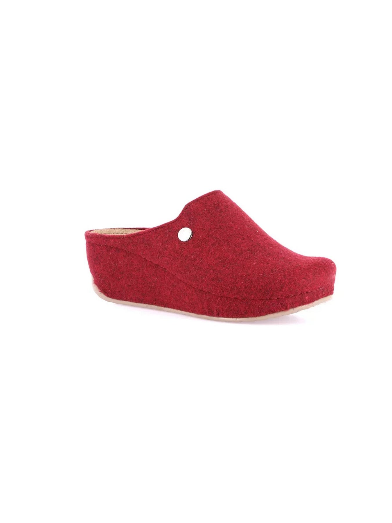 Realizzata in pura lana feltro nel raffinato colore bordò, la ciabatta GRUNLAND CI1541 presenta un design a pantofola chiusa sul davanti e aperta sul tallone, che consente una calzata pratica e immediata. Il piccolo dettaglio metallico laterale aggiunge un tocco di eleganza discreta, mentre la suola in gomma antiscivolo garantisce stabilità e sicurezza su ogni superficie.