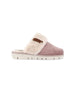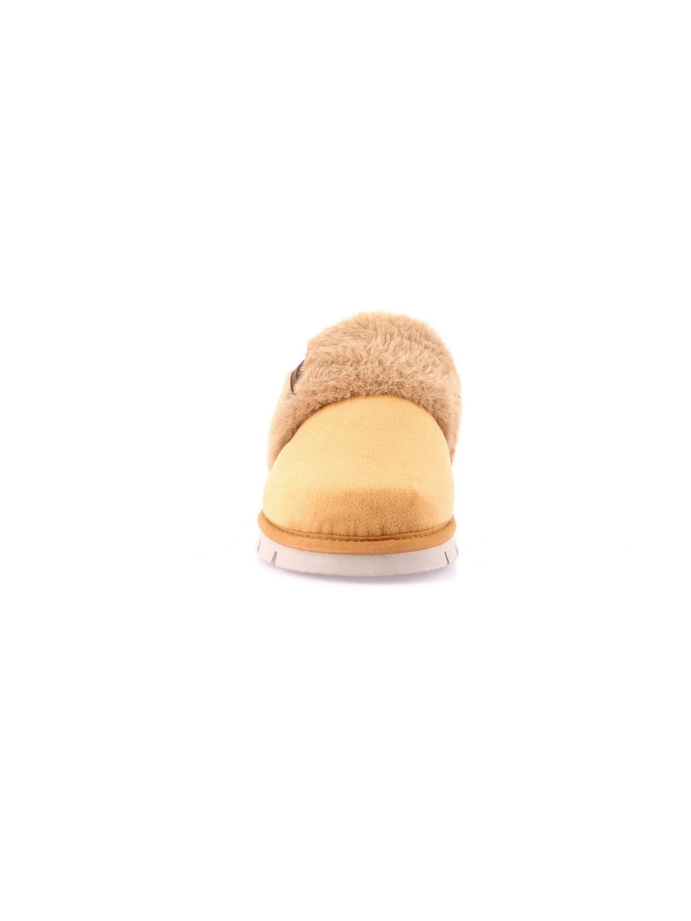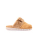 Realizzata in morbido materiale scamosciato color cuoio, la ciabatta presenta un rivestimento interno in pelliccia sintetica soffice, che avvolge il piede in un caldo abbraccio. Il bordo imbottito e la fascia avvolgente assicurano una calzata stabile e confortevole.