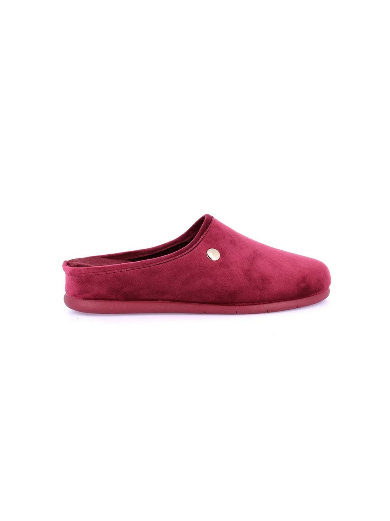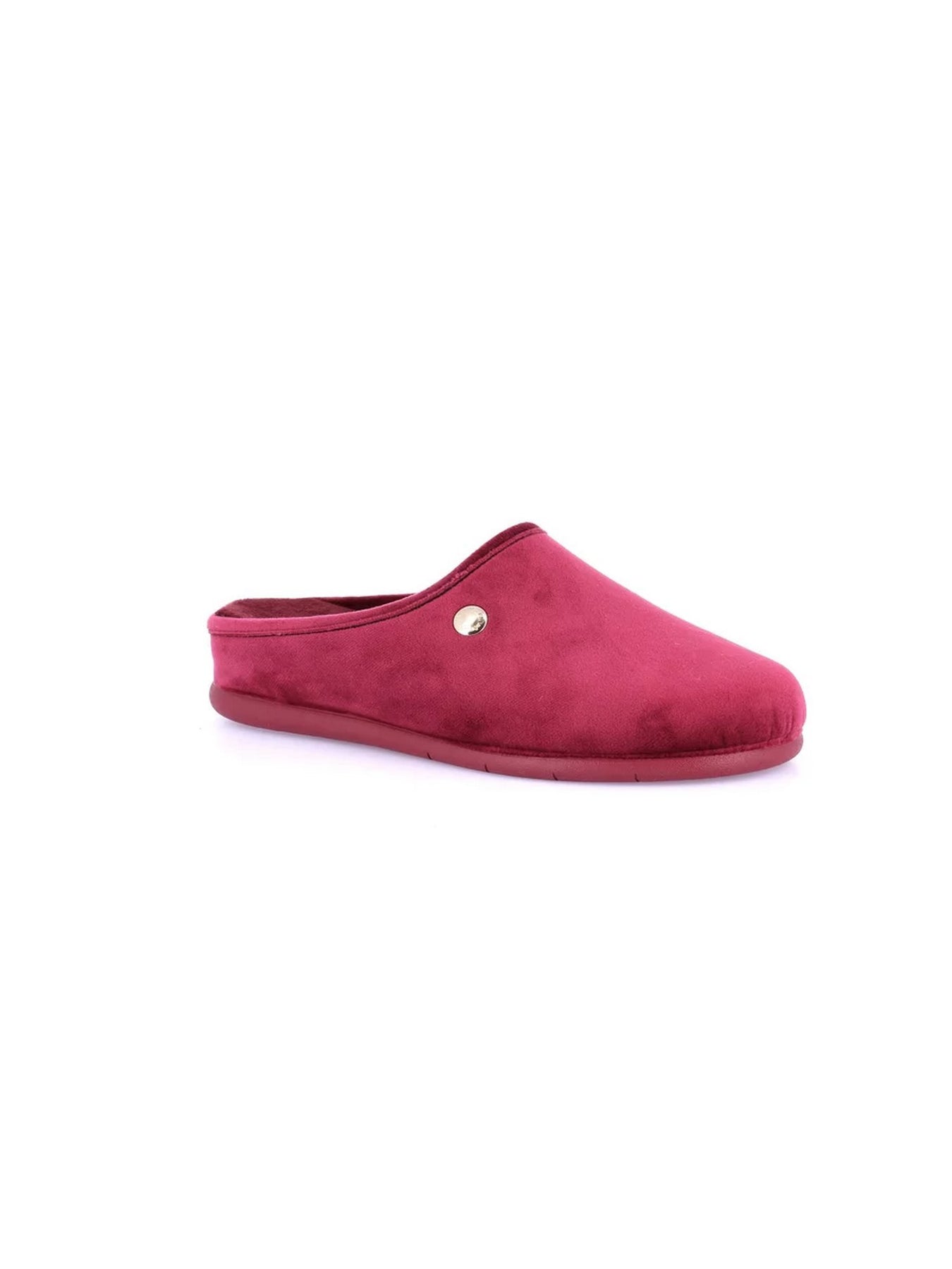 Realizzata in morbido velluto effetto scamosciato nel raffinato tono bordò, questa ciabatta GRUNLAND presenta una linea pulita e avvolgente con punta chiusa e tallone aperto, per una calzata pratica e comoda. Il piccolo logo metallico laterale aggiunge un tocco di eleganza discreta, mentre la suola flessibile in gomma leggera e antiscivolo garantisce stabilità e sicurezza su ogni superficie domestica.
