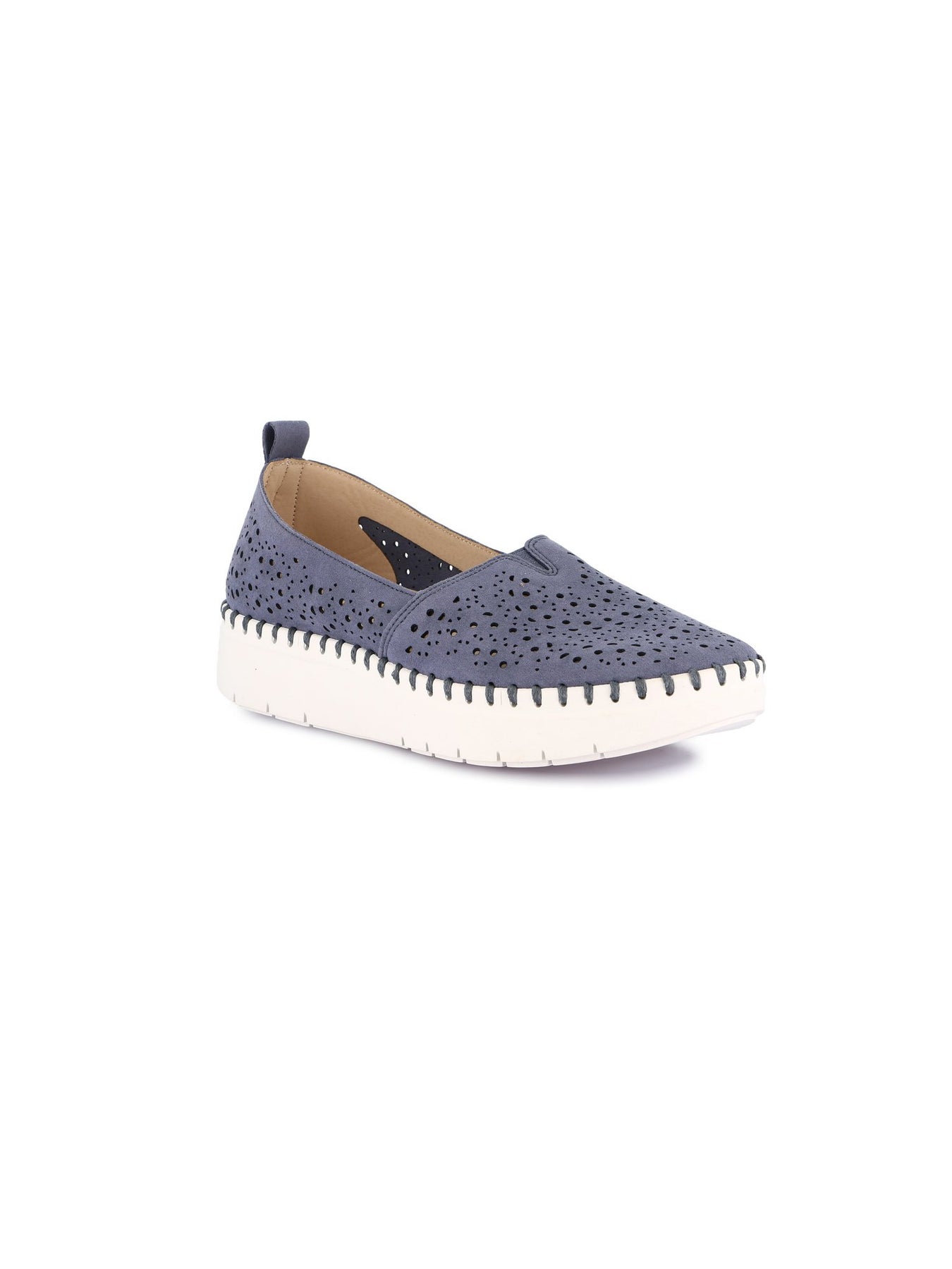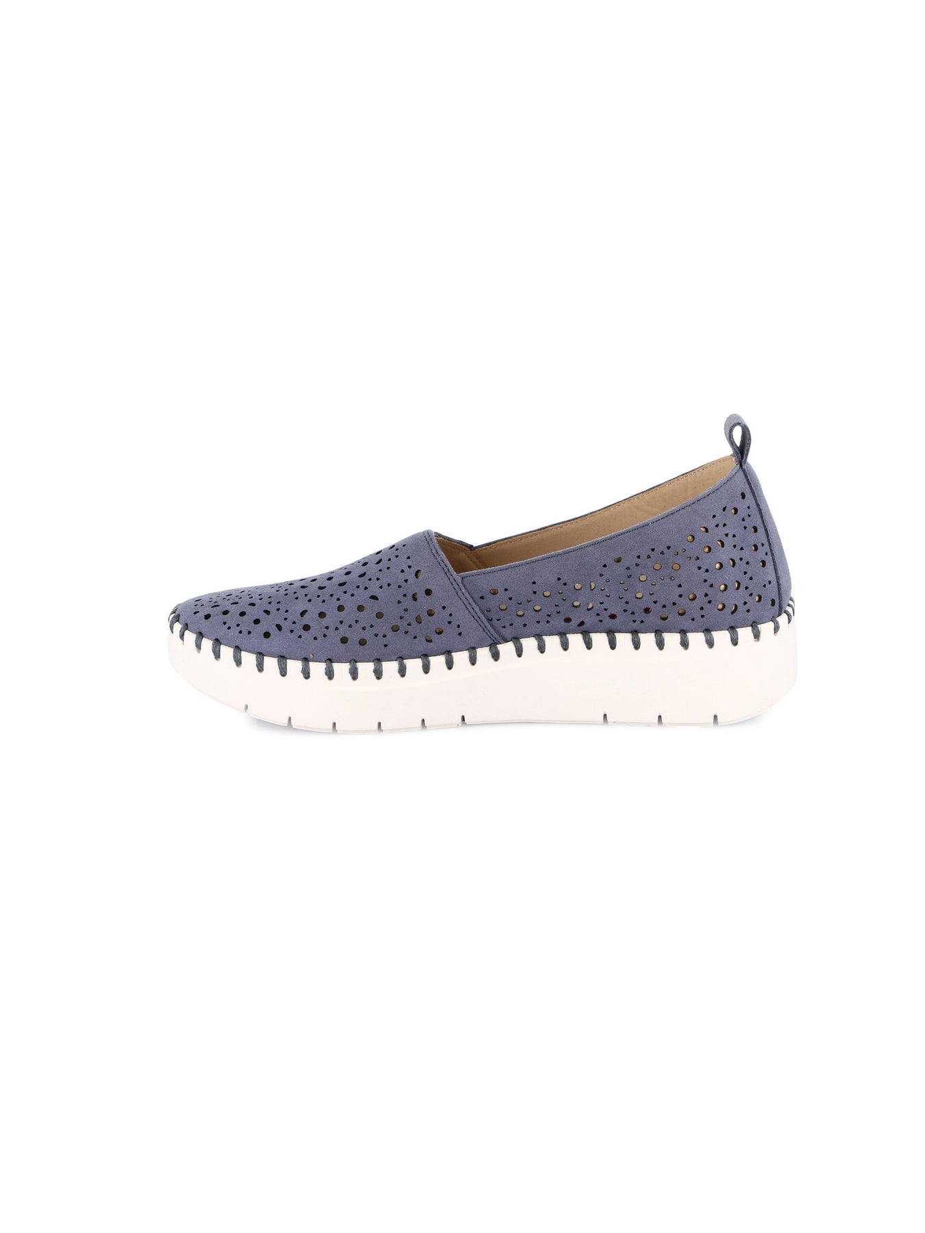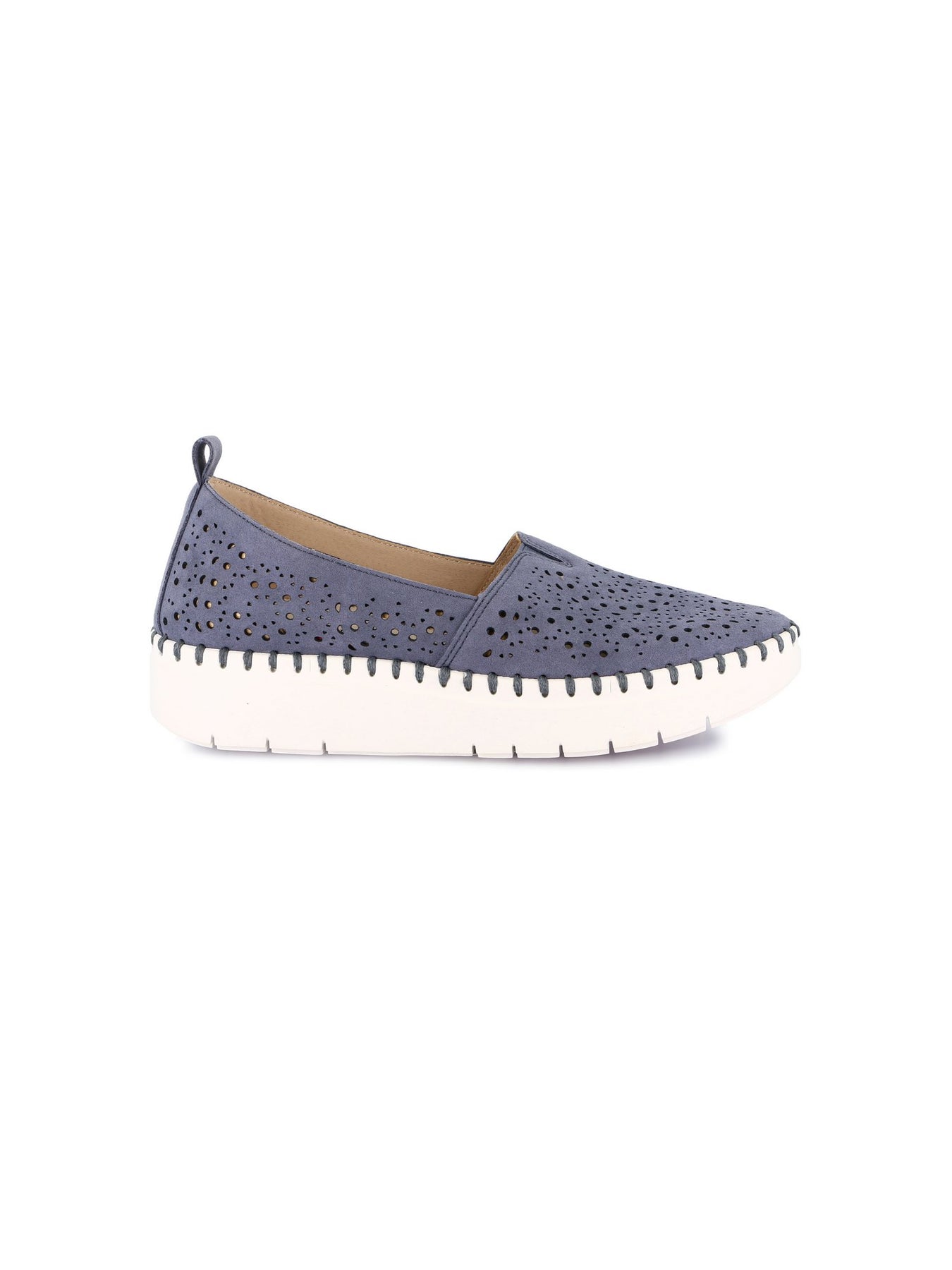 Tomaia Esterna: materiale effetto pelle nella tonalità jeans con lavorazione traforata che dona leggerezza e maggiore traspirabilità