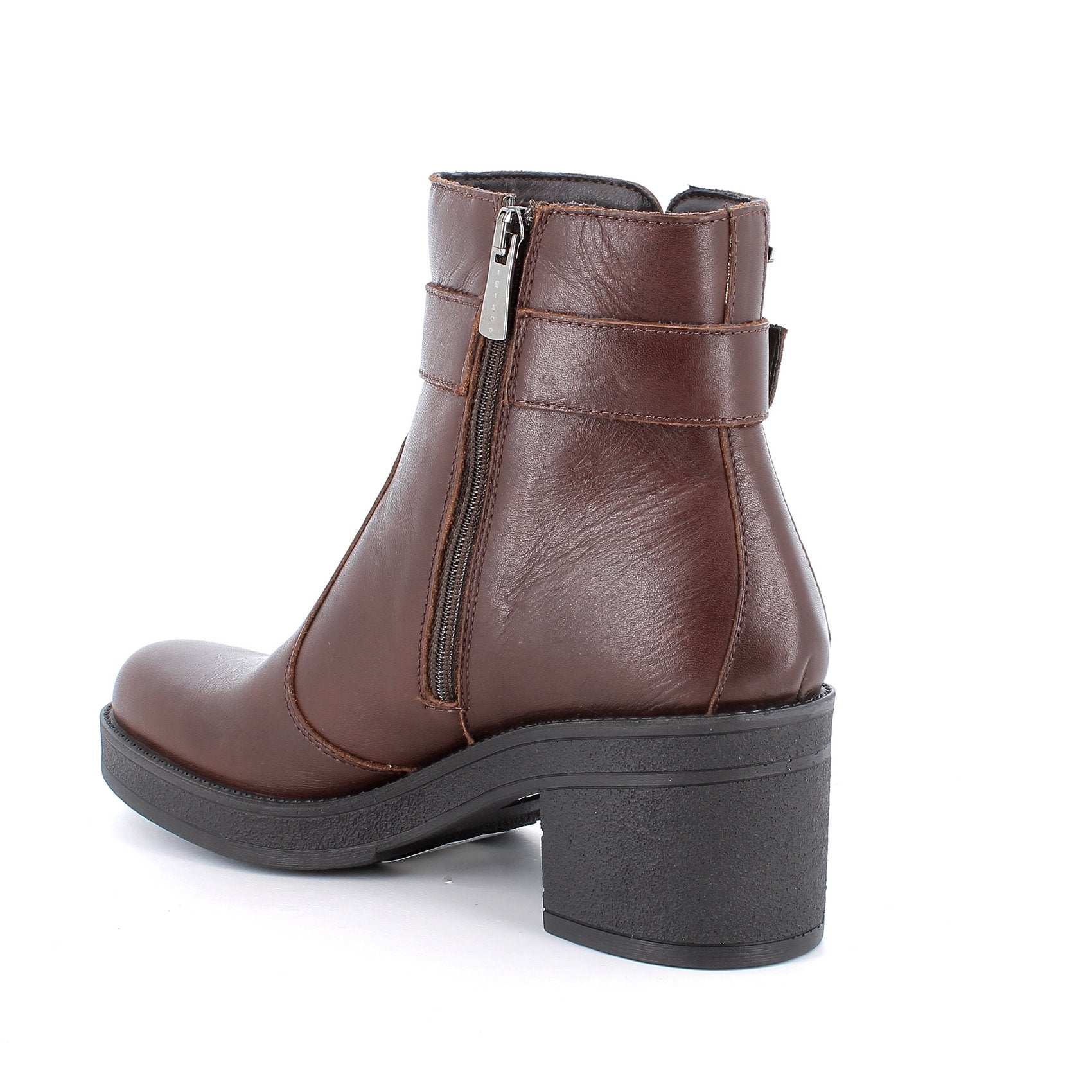 IGI&CO Tronchetto Tacco Medio Donna - 86602 Cioccolato in pelle liscia color cioccolato, con chiusura laterale a zip e cinturino decorativo con fibbia metallica.