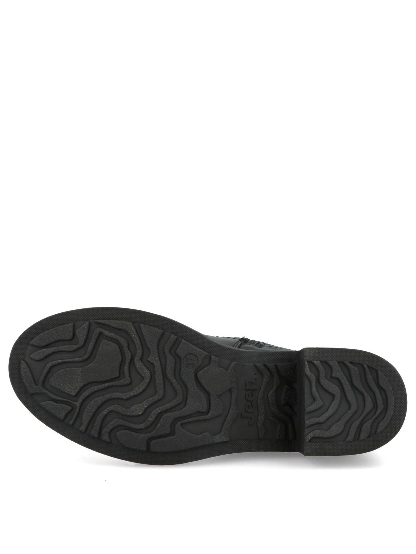 Realizzati in pelle nera liscia con inserti elasticizzati sul gambale in tessuto tecnico, questi anfibi si distinguono per la loro linea minimal e pulita, ideale per look versatili e sofisticati. Il dettaglio metallico sul tallone e il logo JEEP discreto aggiungono un tocco di personalità e modernità.