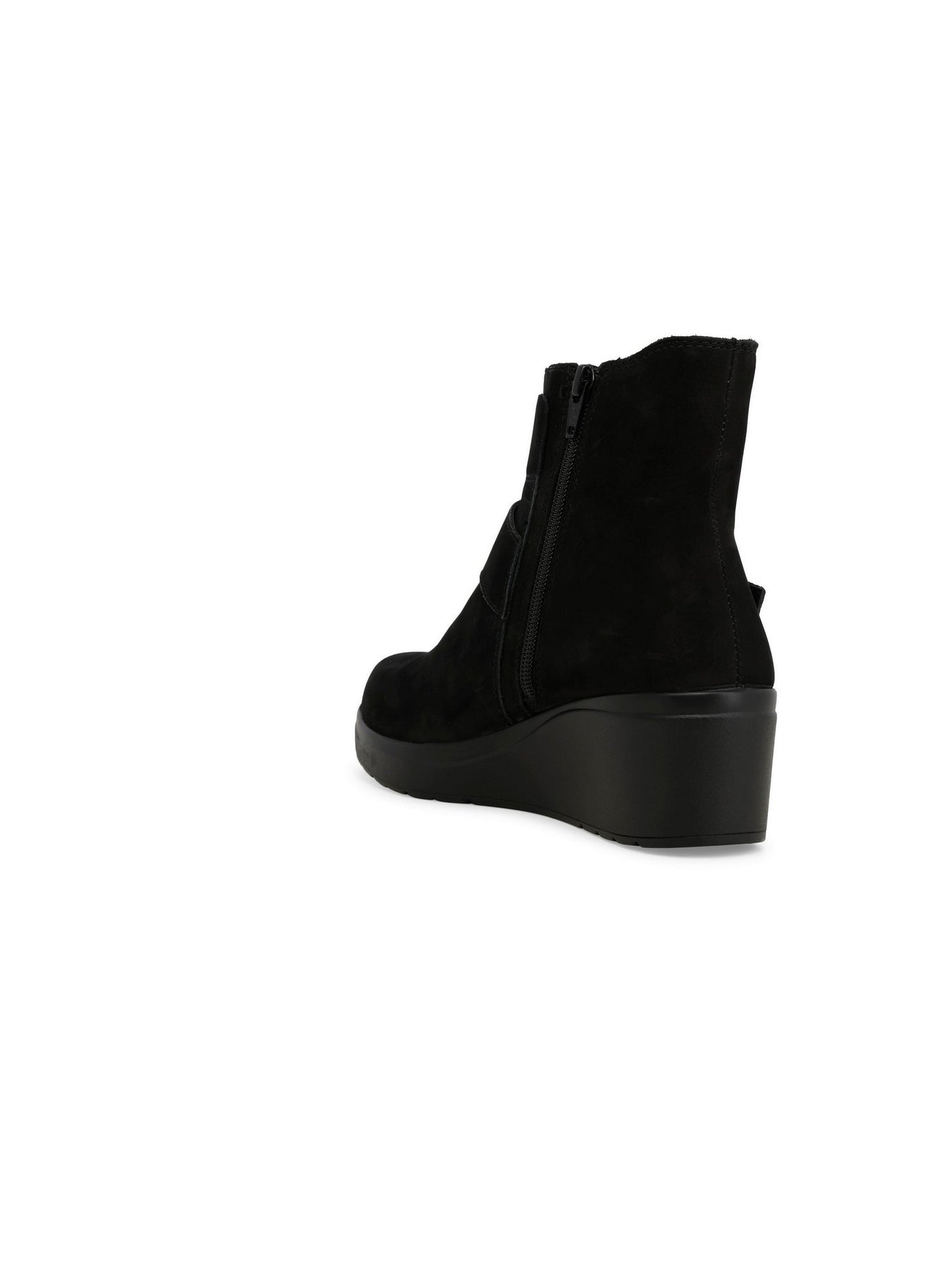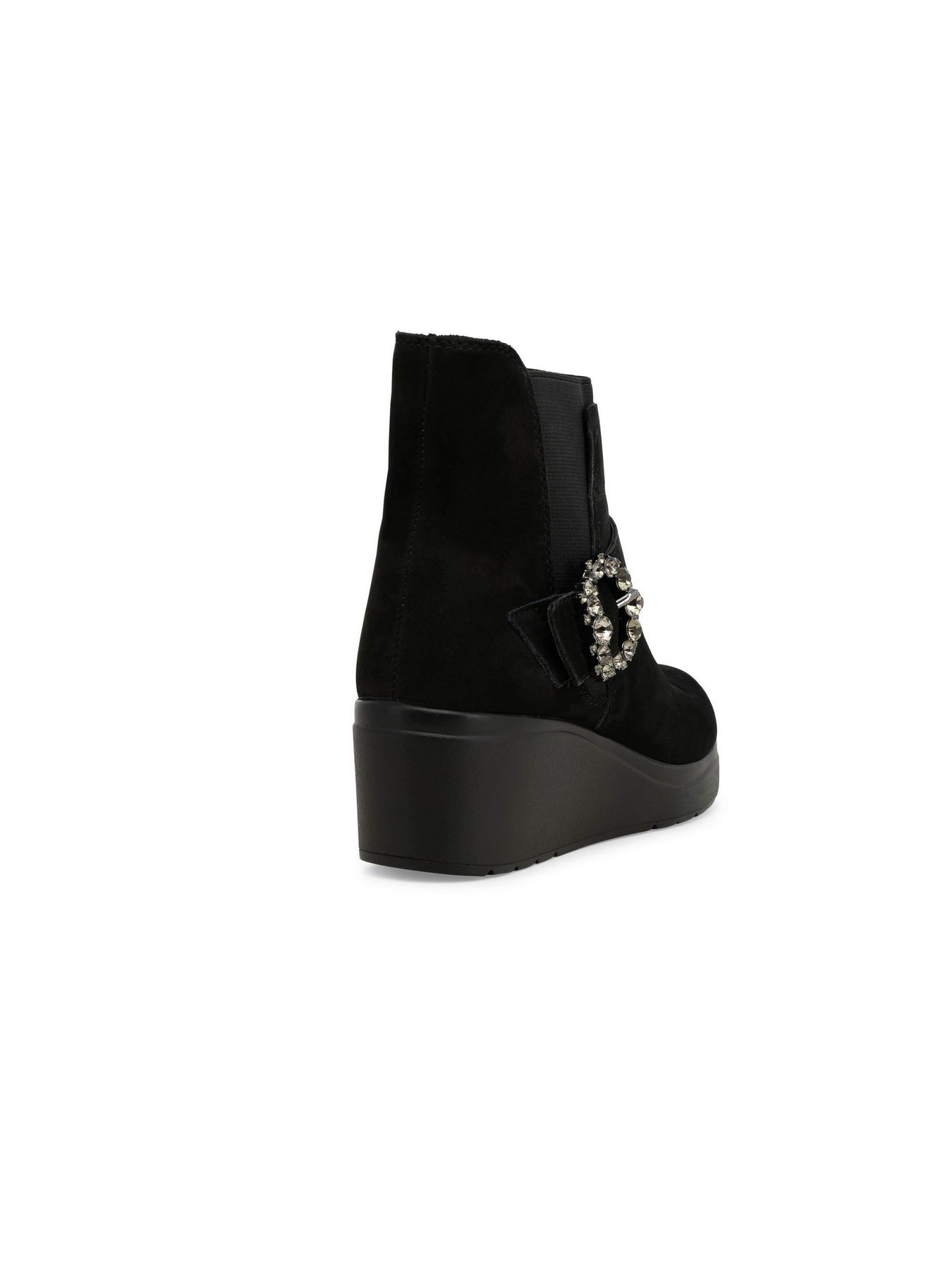 MELLUSO Tronchetto Con Zeppa Donna - K53019 Nero Tronchetto da donna in camoscio nero con fibbia gioiello laterale e zeppa comoda alta 6 cm.