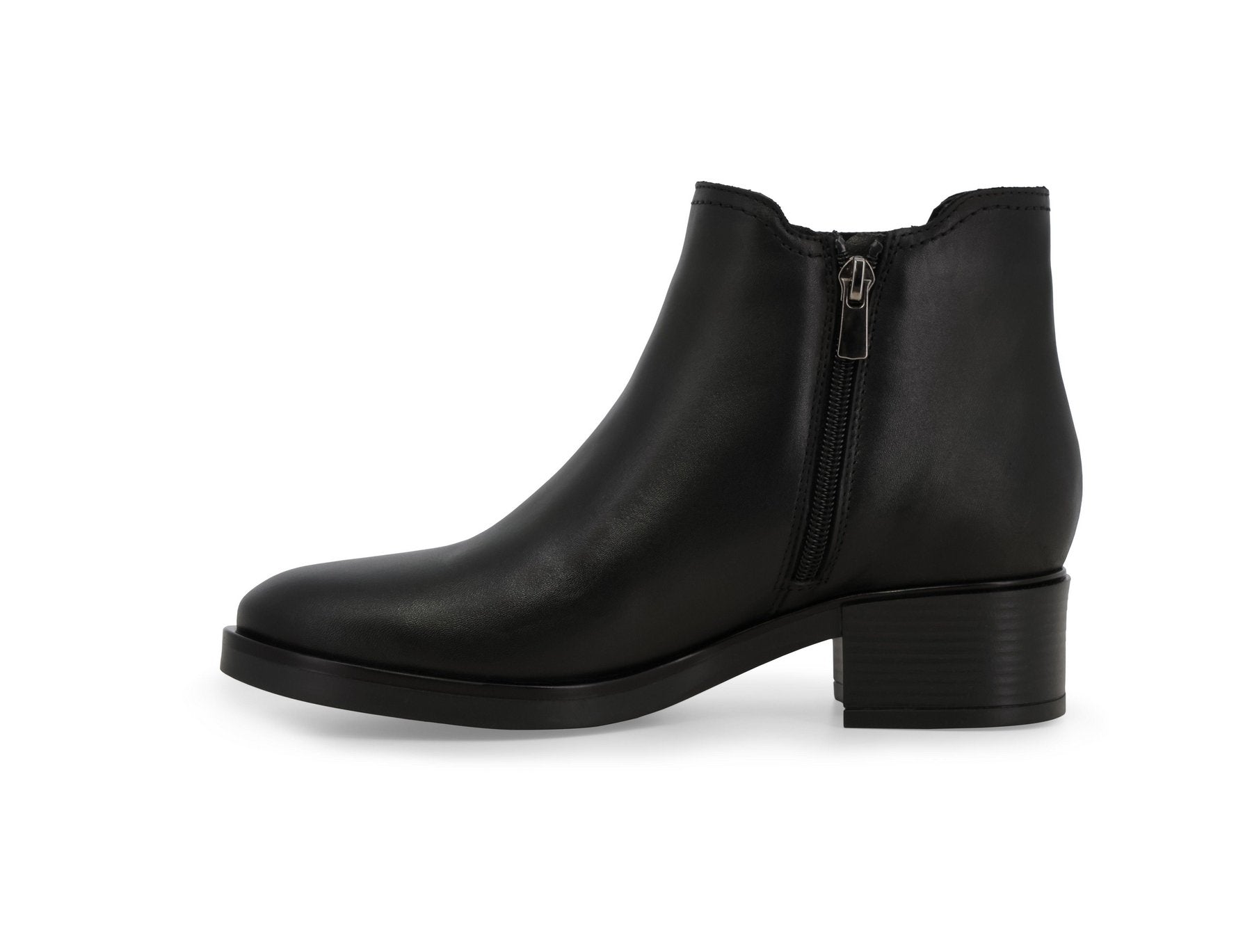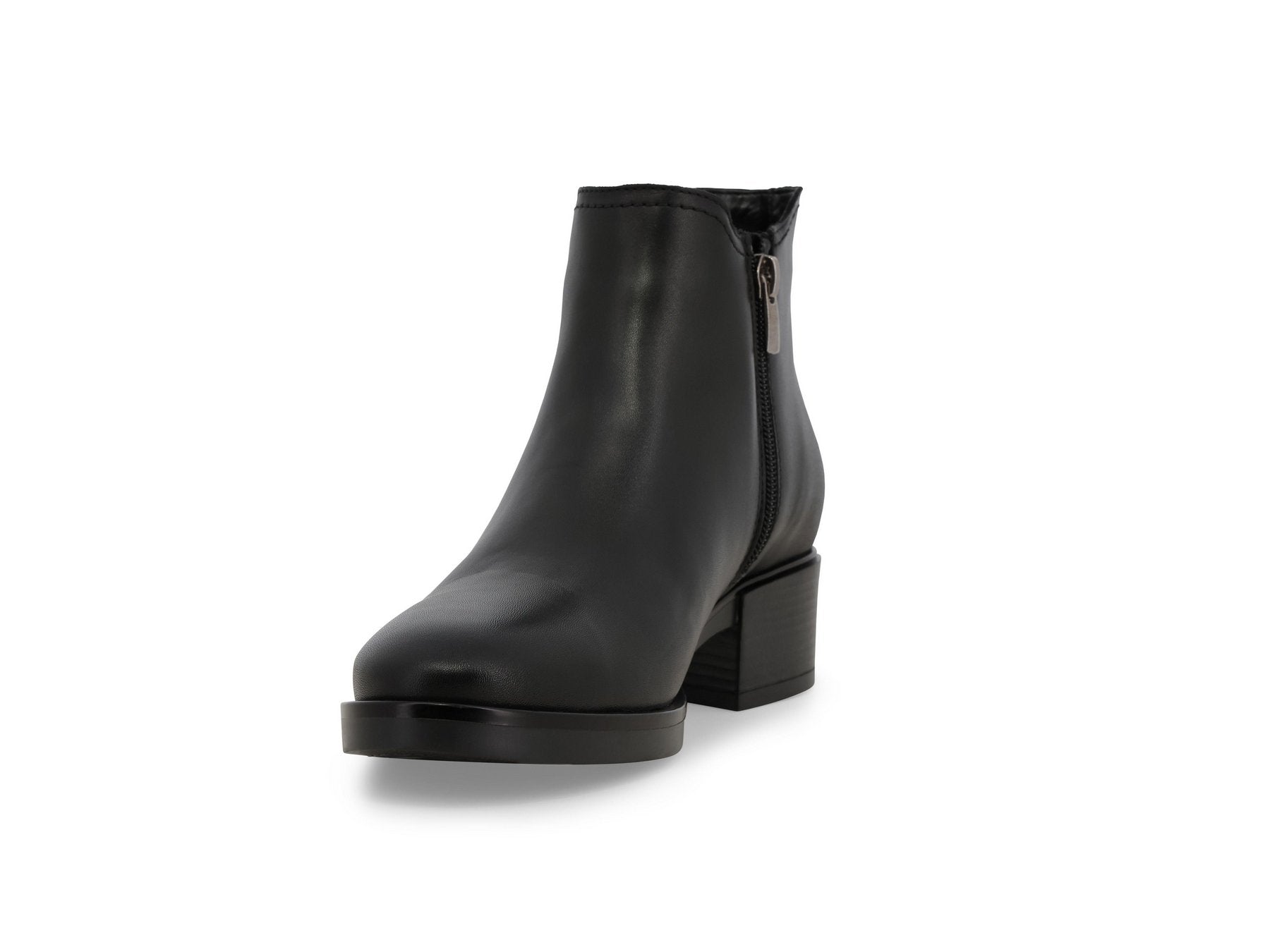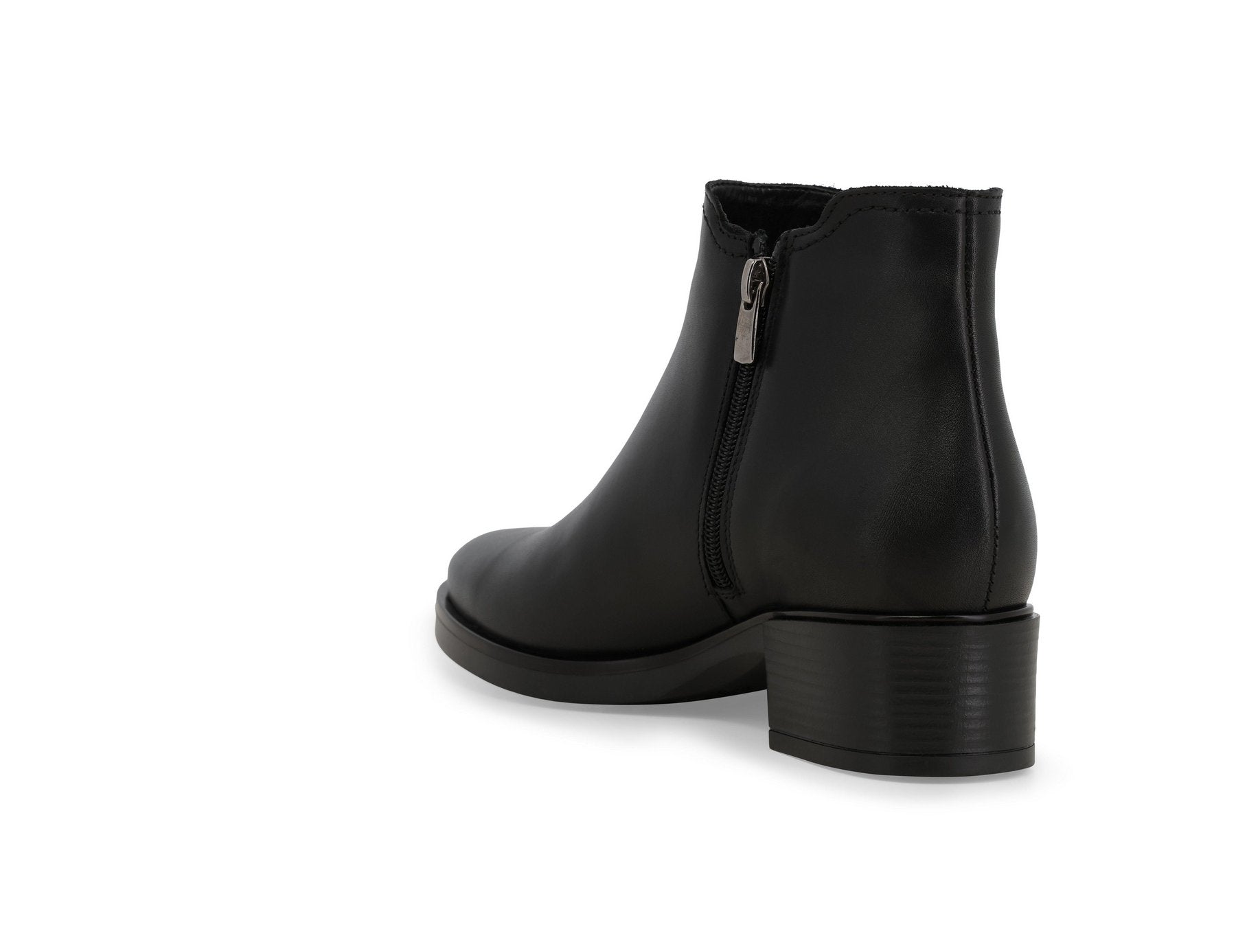 Realizzato in pelle nera liscia di alta qualità, presenta un design sobrio e moderno che lo rende estremamente versatile. Gli inserti elastici laterali garantiscono una calzata facile e adattabile, mentre il tacco basso e stabile assicura comfort e sostegno per tutto il giorno.
