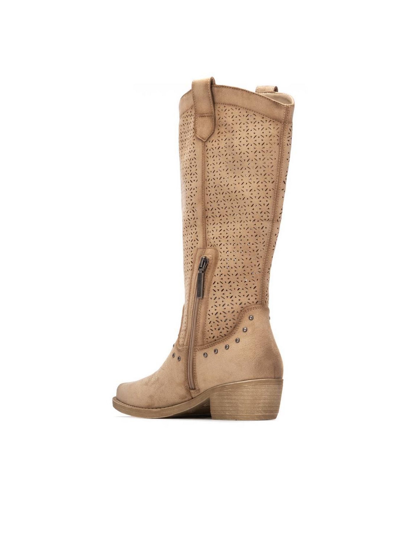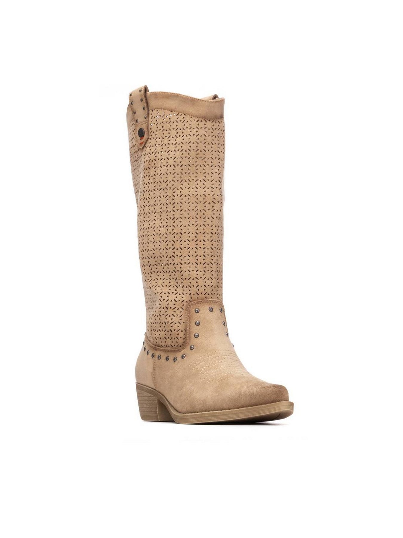 REFRESH Stivale Tacco Basso Donna - 175292 Beige Stivale da donna dallo stile western chic, realizzato in tonalità beige con lavorazione traforata su gambale e dettagli decorativi. Tacco basso effetto legno, ideale per look casual e boho di mezza stagione. Composizione del prodotto: Tomaia Esterna: Materiale sintetico traforato Tomaia Interna: Tessuto Suola: Gomma resistente Altezza tacco: circa 4 cm