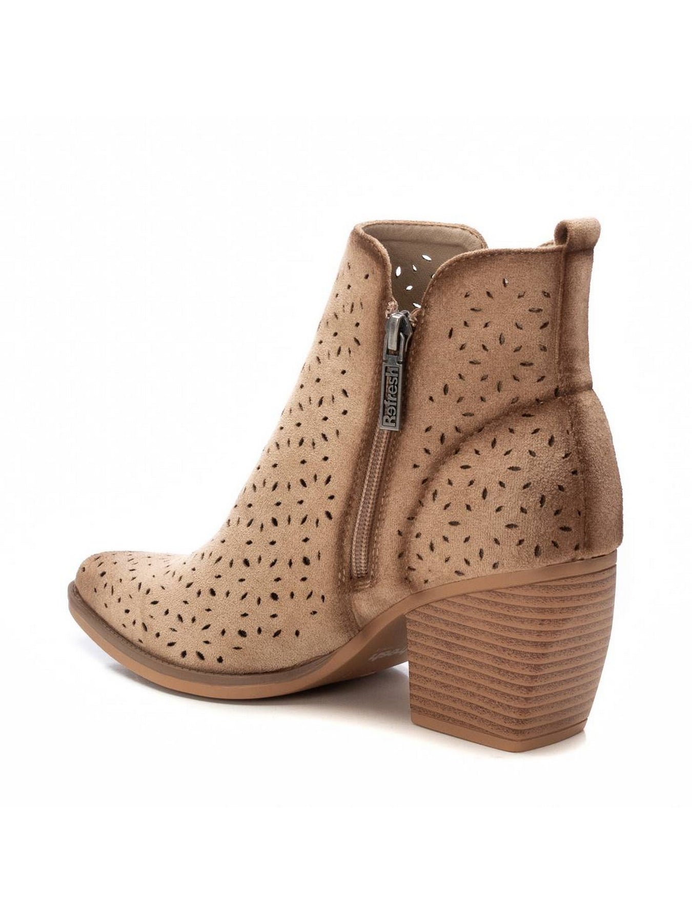 Il REFRESH 172519 Beige è un tronchetto pensato per unire stile e comfort. La lavorazione traforata dona leggerezza e traspirabilità, mentre la chiusura con zip laterale assicura una calzata pratica. Il tacco medio effetto legno slancia la silhouette garantendo stabilità, rendendo questo modello perfetto per completare outfit casual chic e look quotidiani con eleganza.