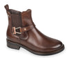 Realizzato in pelle liscia color marrone, presenta un cinturino laterale con fibbia metallica che dona un tocco di stile contemporaneo. Gli inserti elastici e la zip laterale assicurano una calzata comoda, veloce e aderente.
