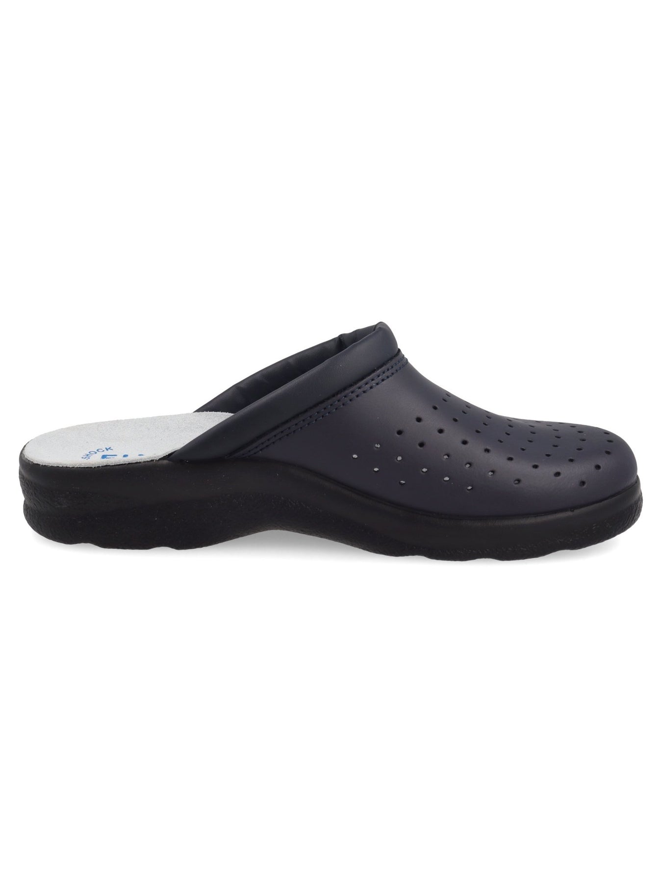 Realizzata con una tomaia traforata che favorisce la traspirazione del piede, questa ciabatta è dotata di plantare anatomico e suola antiscivolo, garantendo una calzata stabile e sicura su ogni superficie. Il design semplice e professionale la rende perfetta anche per l'uso quotidiano.