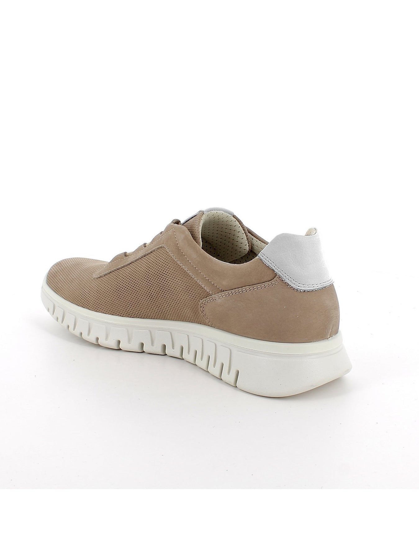 Tomaia Esterna: realizzata in pelle scamosciata nella tonalità nocciola con dettagli a contrasto, progettata per offrire resistenza, qualità e uno stile casual raffinato