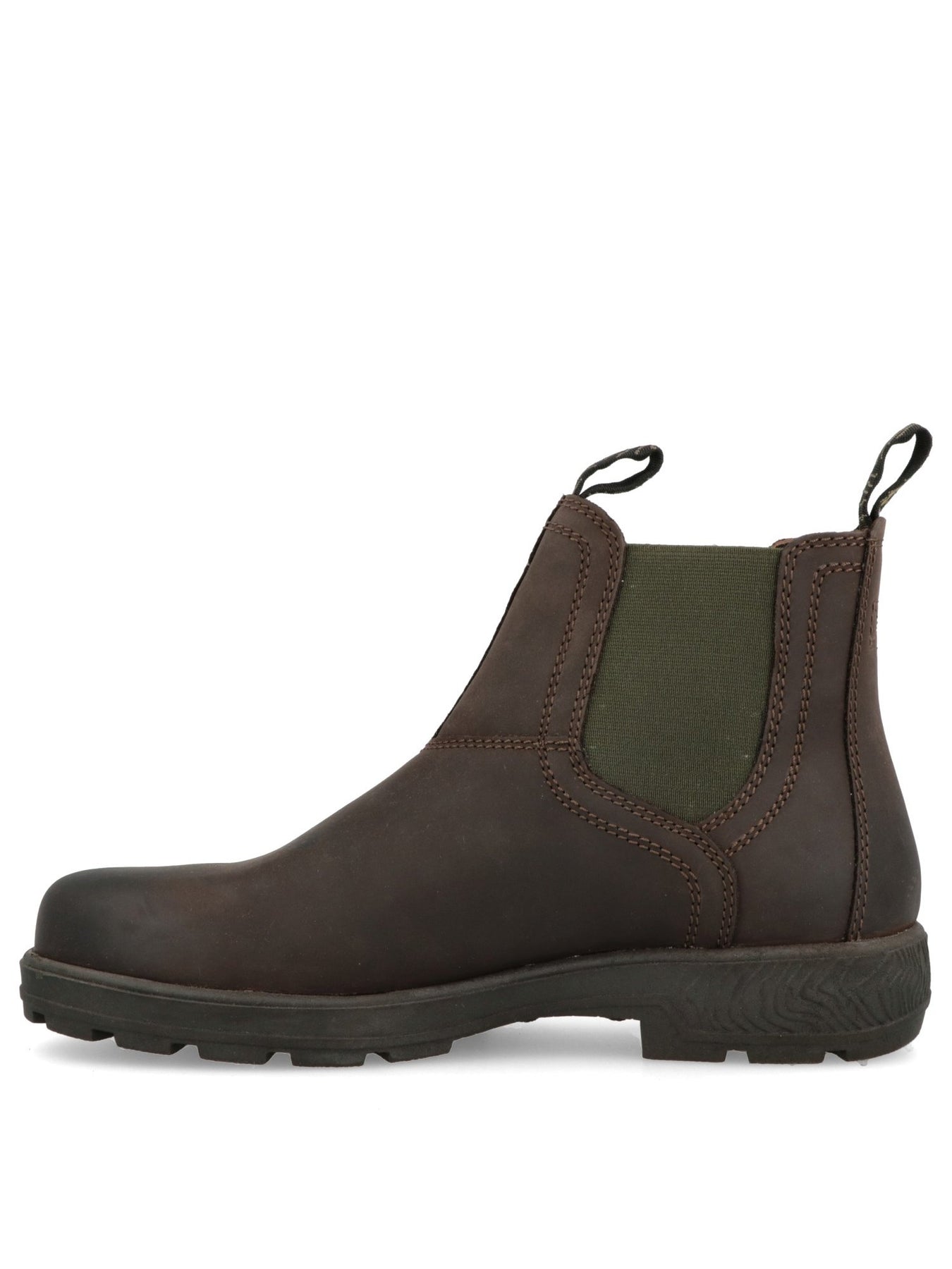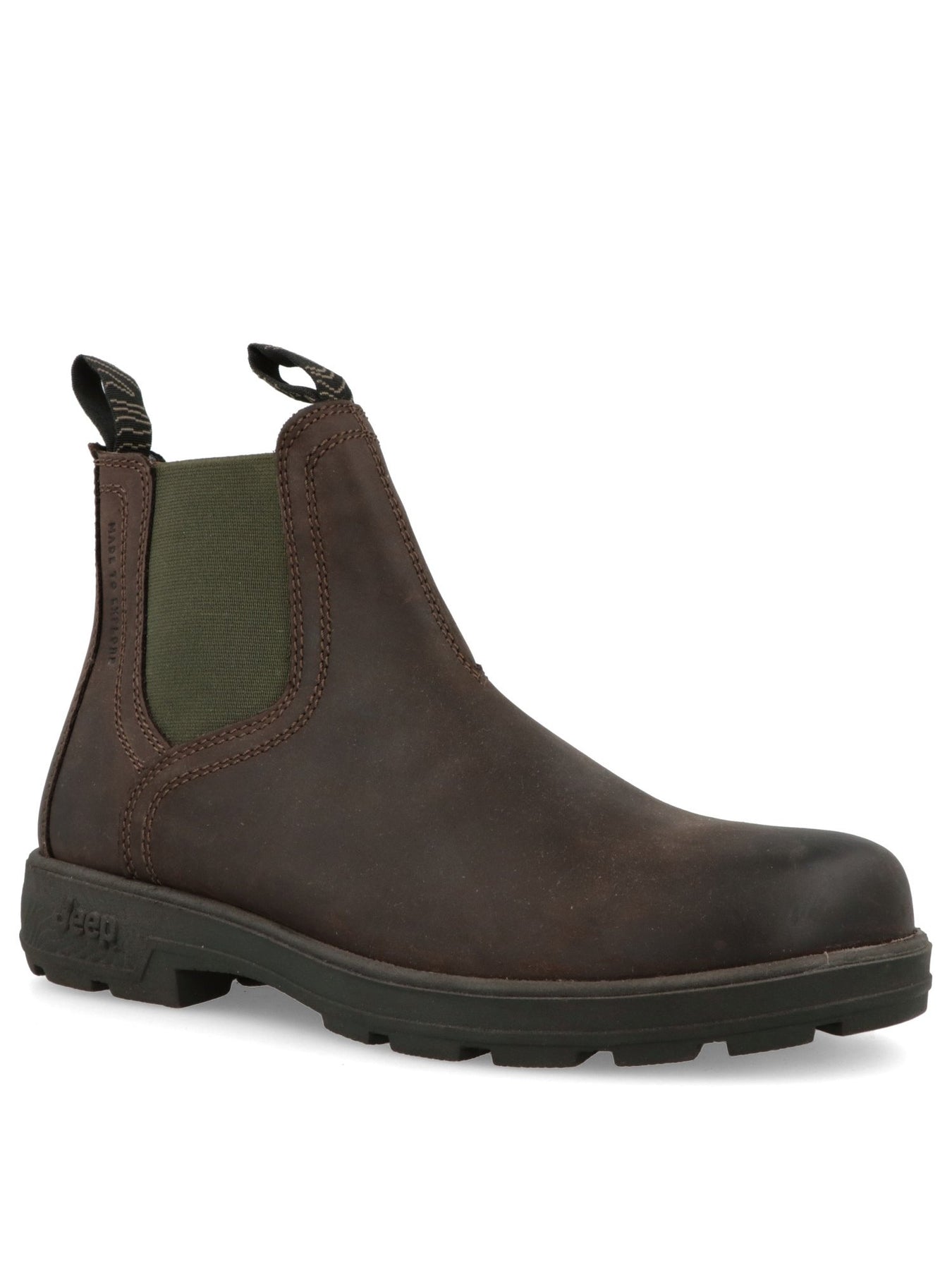 Realizzato in pelle naturale color ebano, questo modello presenta inserti elastici laterali verde militare che ne enfatizzano l'aspetto grintoso e ne facilitano la calzata. Le cuciture rinforzate e i pull-tab posteriori e anteriori garantiscono praticità e durata nel tempo, rendendolo perfetto per un uso quotidiano intenso.